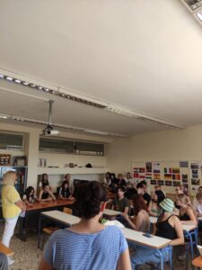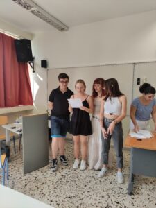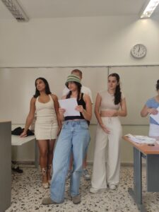 The second day of the program, Wednesday 24 September we had the honor to visit the Music School of Drama, there we met with some of the students! All together, we took part in an active workshop with the topic: “Fighting Fake News in Europe”. In this point we would like to thank our Trainer, the psychologist Tazoglou Evanthia for her beautiful work. Then the students presented us a part of their work, playing their instruments and singing so a beautiful party took place to the school yard, a typical Greek glenti! We really enjoyed ourselves and after a short break we returned to the venue at the Municipality Hall where the World Cafe we prepared became real! Some students at a local English school joined us and after a small talk around the topic of Fake News, we created four different posters with the answers of all of our four questions. Finally, we played a Kahoot quiz and we really enjoyed it! This long day ended with a big traditional Greek dinner!